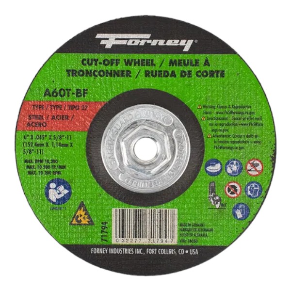 Forney Cut-Off Wheel, Metal, Type 27, 6" x .045" x .045"