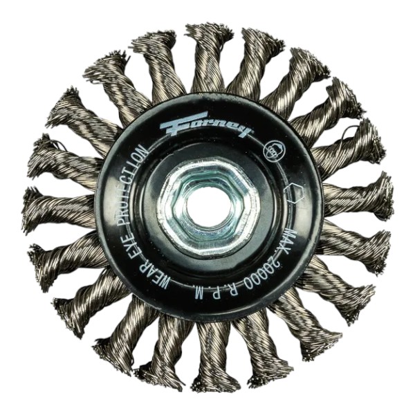 Forney Wire Wheel Knotted SS, 4" x .020 x 5/8"-11 Arbor