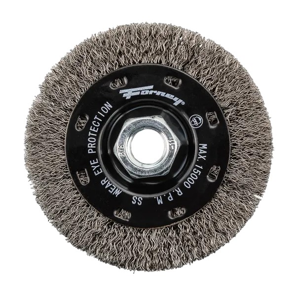 Forney Wire Wheel Crimped SS, 4" x .014 x 5/8"-11 Arbor