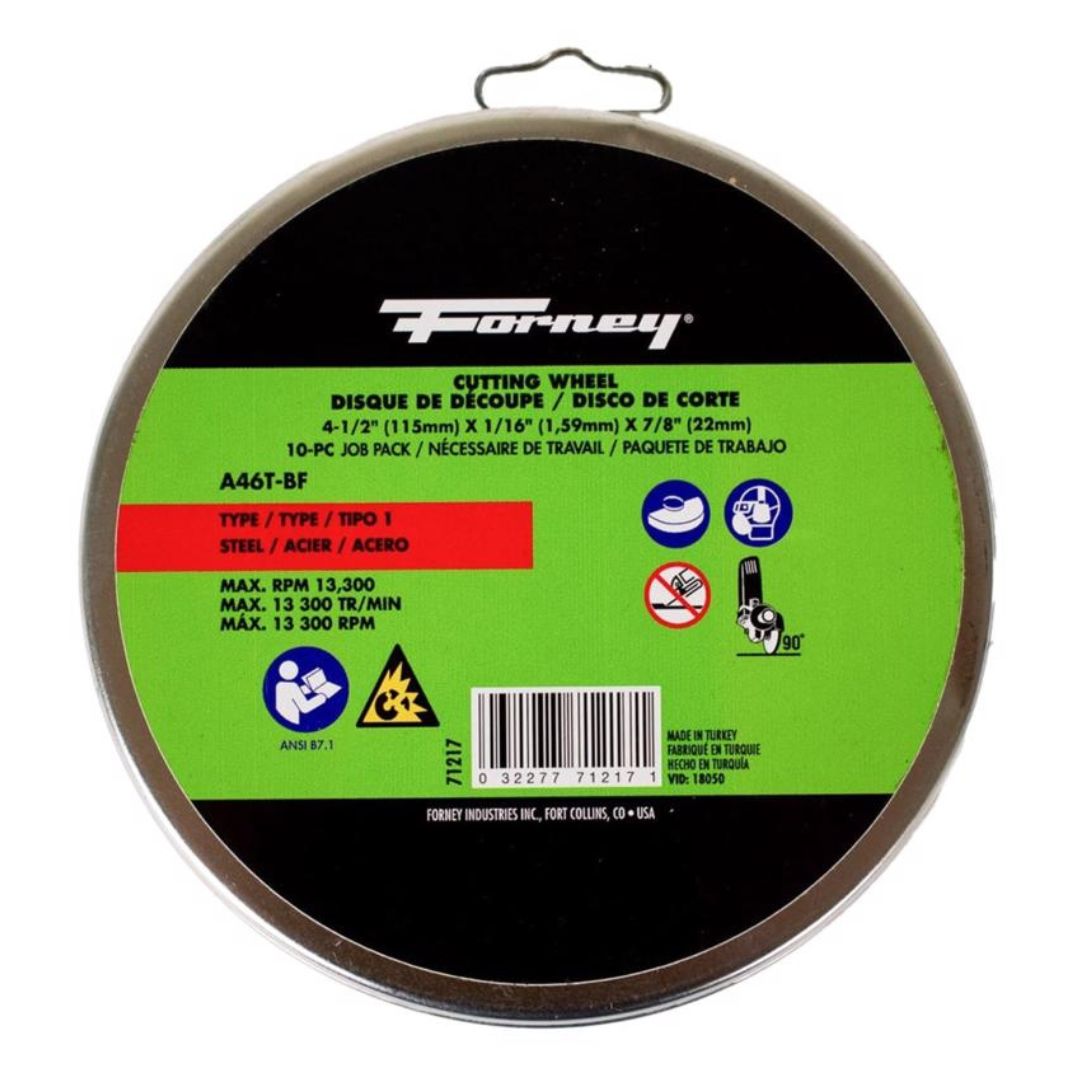 Forney Cut-Off Wheel, Metal, Type 1, 4-1/2" x 1/16" x 7/8" (10 Pack)