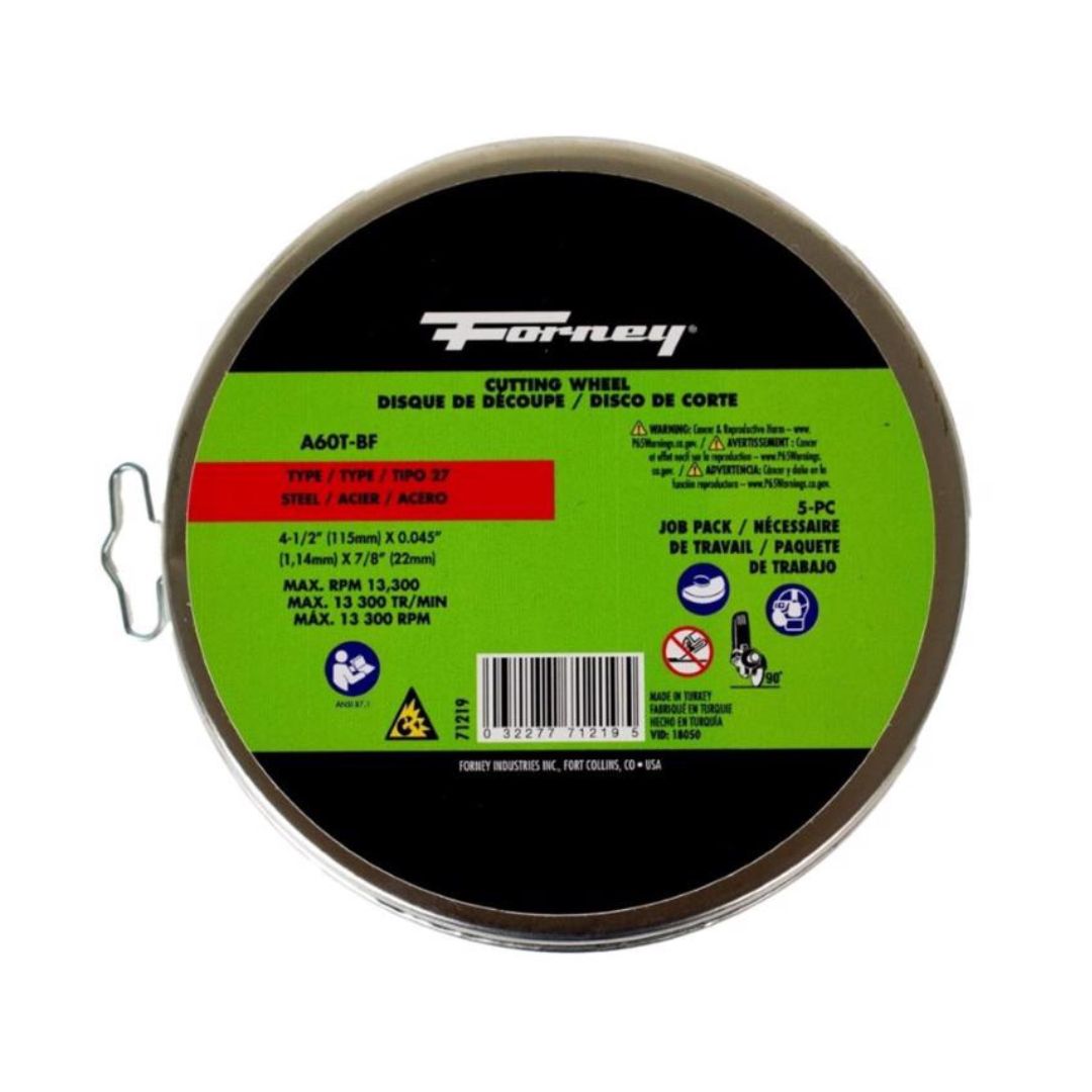 Forney Cut-Off Wheel, Metal, Type 27, 4-1/2" x .045" x 7/8" (5 Pack)